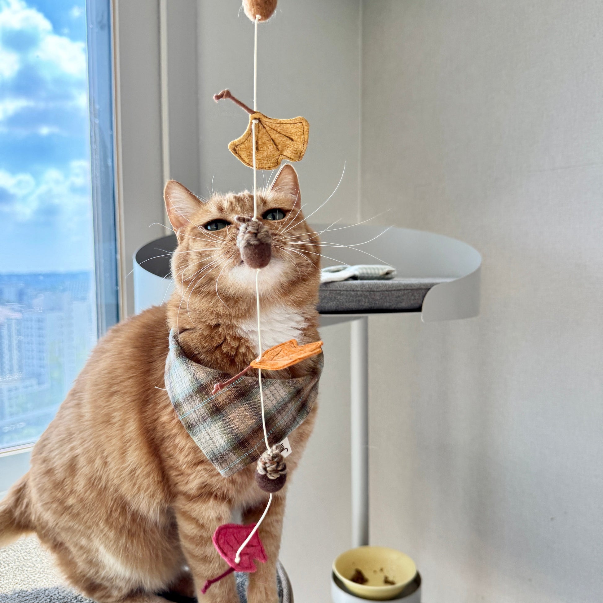 Celebrate the colors of autumn with this fallen leaves rod. A cascade of soft, fabric leaves in warm seasonal hues dangles from the wand, accented with three playful acorns that sway and bounce to capture your cat’s attention.