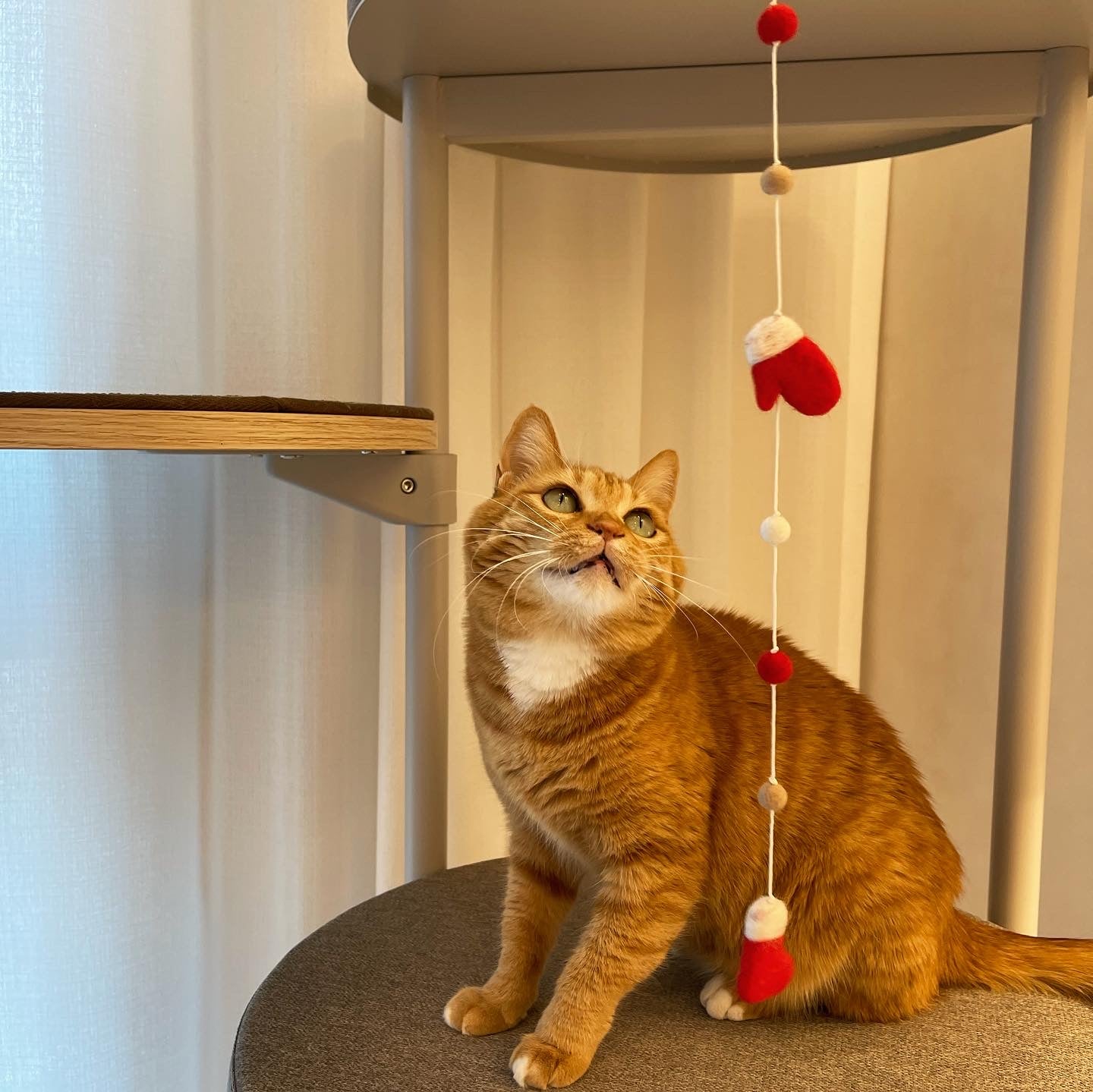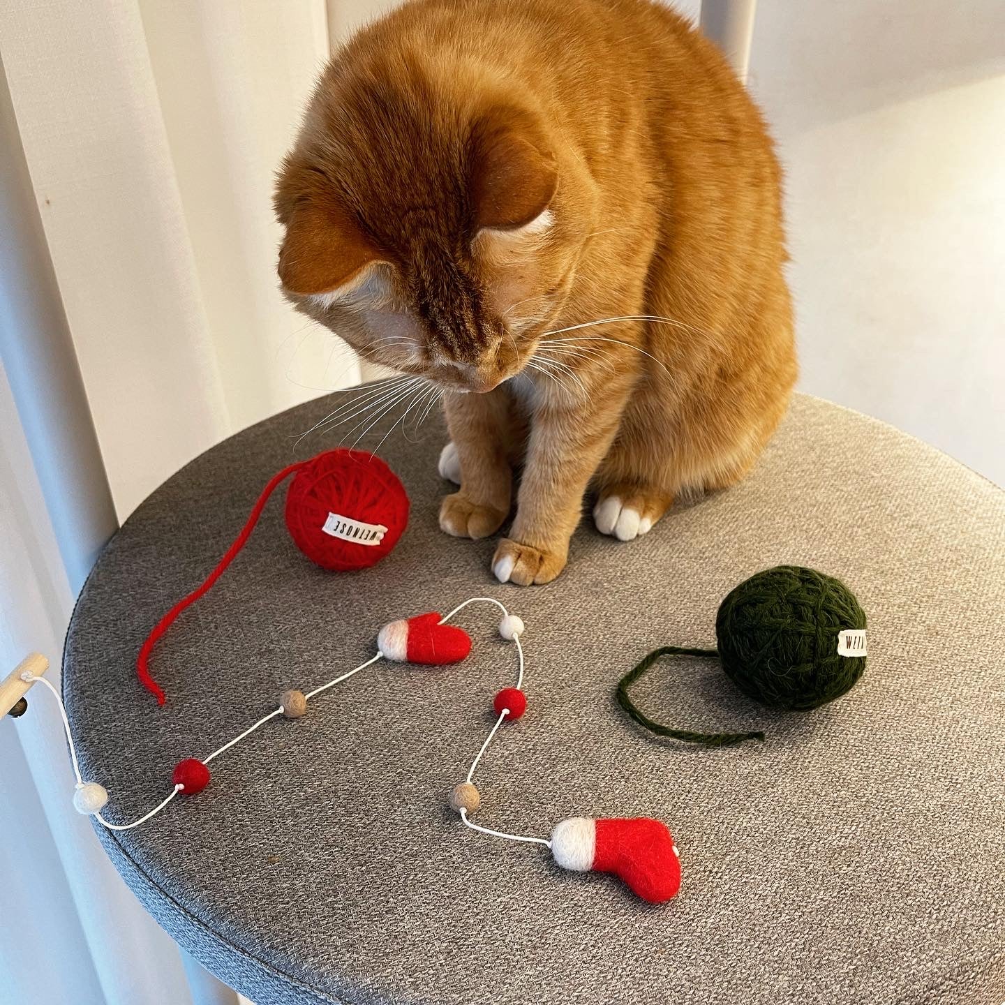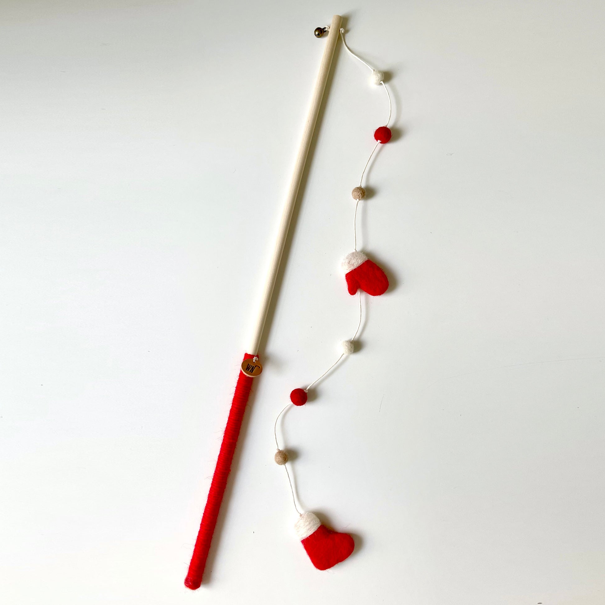 The Falling Snow Rod captures the quiet beauty of snow drifting through the air. Soft white felt balls dangle from the end of a sturdy wooden rod, creating a light, fluttery motion that mimics falling snowflakes. Each flick of the rod brings the toy to life — teasing your cat’s natural hunting instincts in the coziest way.