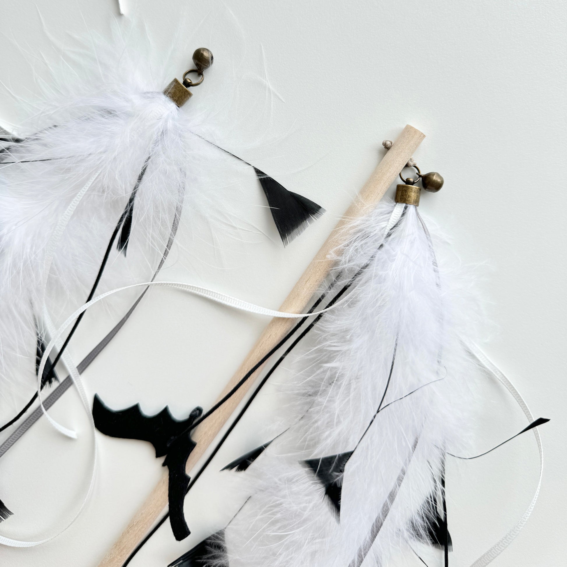 A playful spirit for spooky season—this flying bats wand floats and sways to spark your cat’s hunting instincts. Handmade, light, and full of Halloween charm, it’s perfect for spirited play and festive fun.