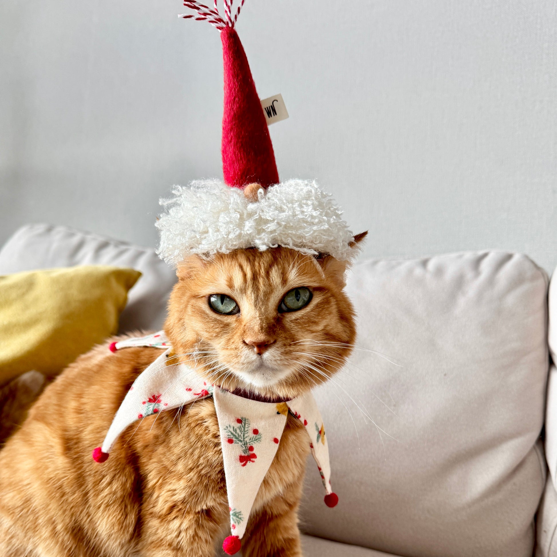 A cozy little cape inspired by winter gnomes, perfect for adding a touch of holiday magic to your cat’s (or small dog’s) festive wardrobe. ✨🎄