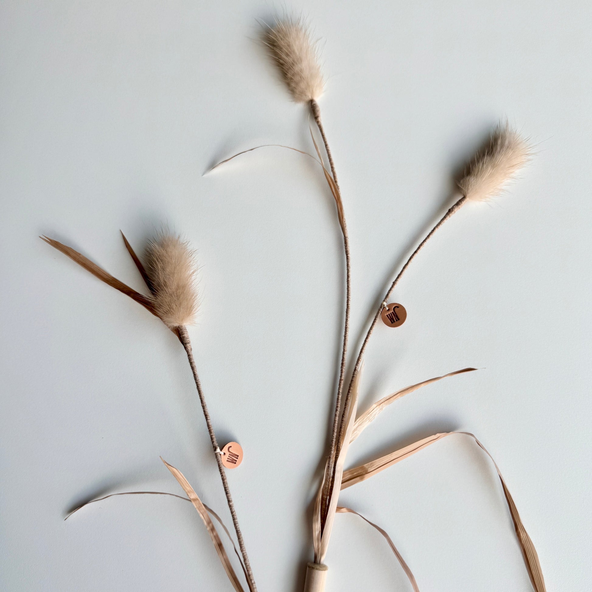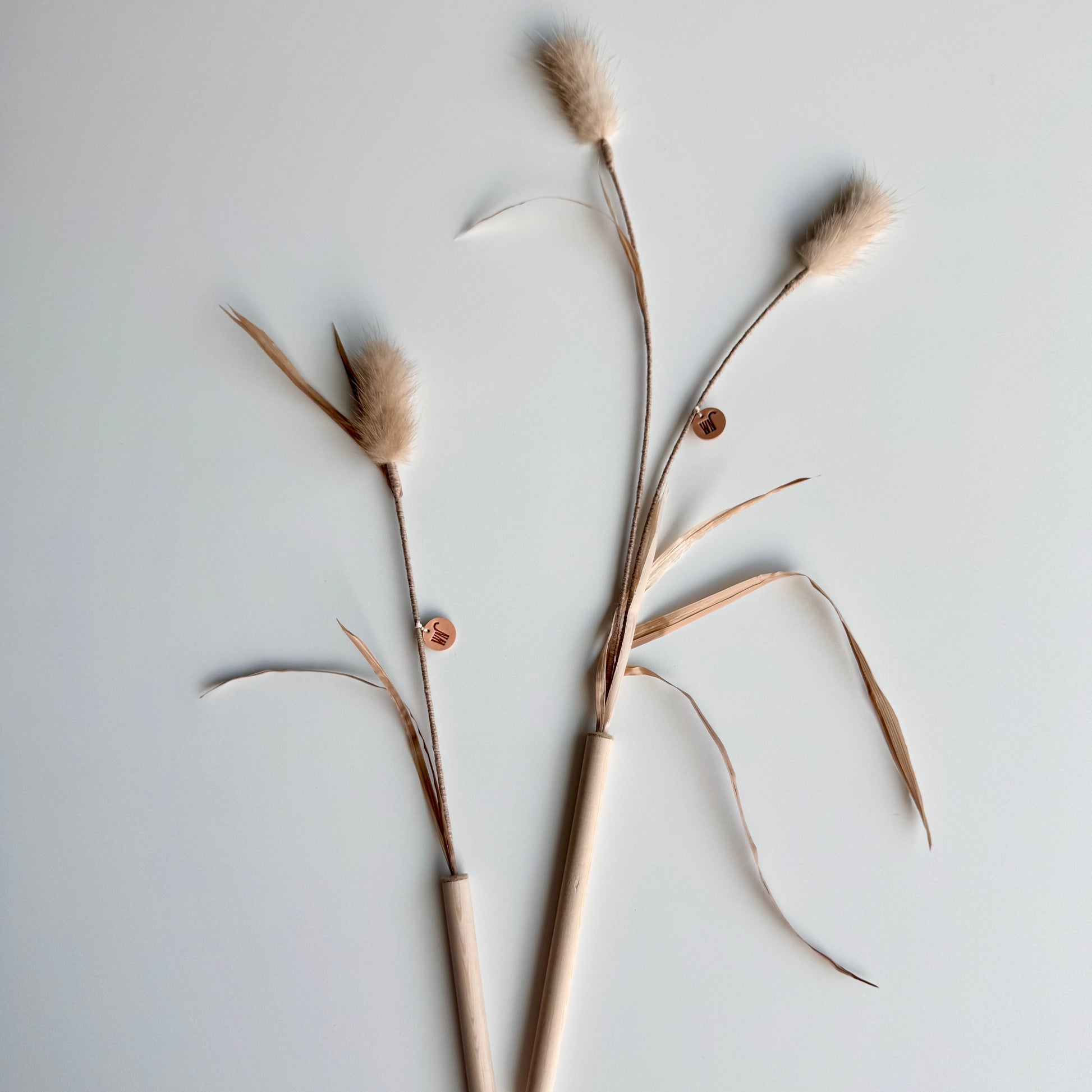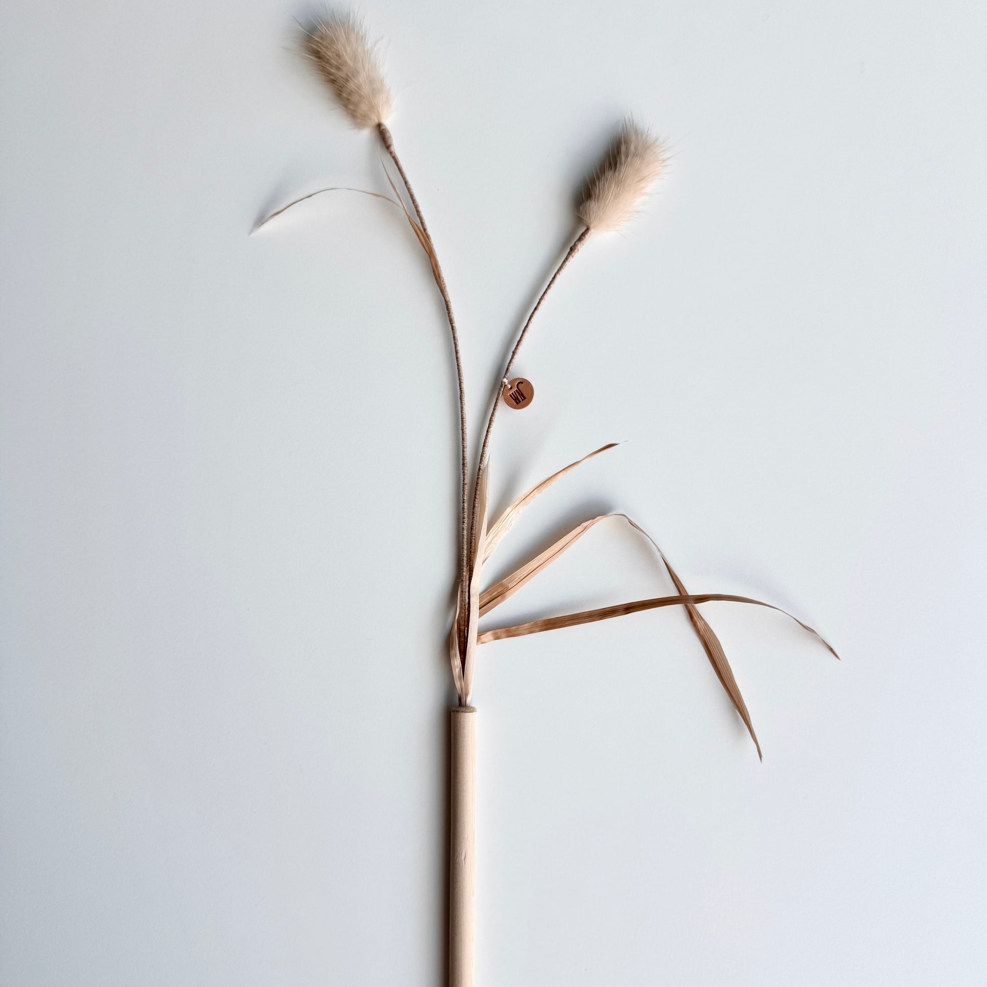 Available in two versions: the short wand with a single blade of wheat, or the long wand with two blades for extra movement and play.